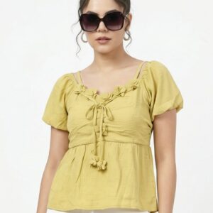 Puffed sleeves crop top golden
